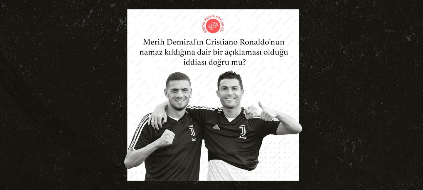 Bir Instagram sayfası tarafından 5 Şubat 2021 tarihinde yapılan paylaşımda Juventus FC forması giyen Türk profesyonel futbolcu Merih Demiral’ın sağlık durumunu sormak için takım arkadaşı ünlü futbolcu Cristiano Ronaldo’yu aradığını, telefonu annesinin açtığını ve “oğlum namaz kılıyor bitince seni arar” dediğini söylediği iddia edildi. Paylaşım yaklaşık 193 bin kez görüntülenirken, 2 bin 500’ün üzerinde beğeni ve 100’ün üzerinde de yorum almış.