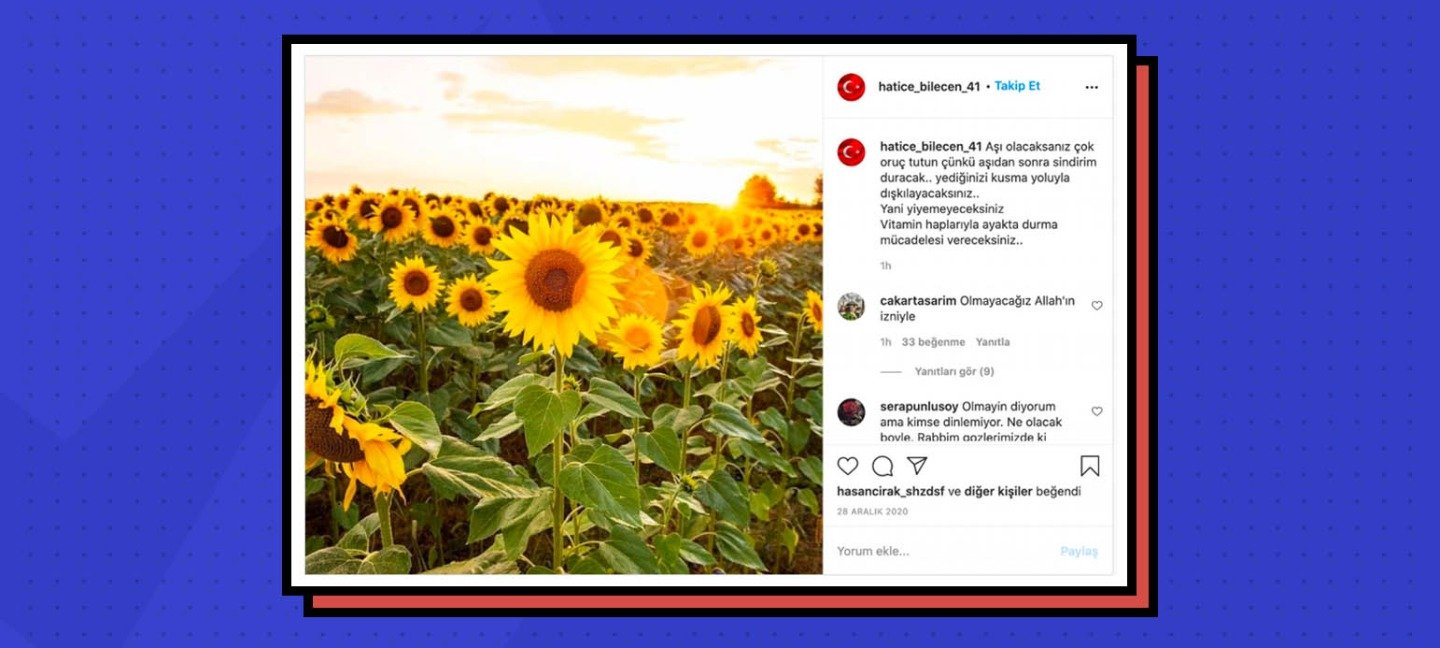 Bir Instagram sayfası tarafından 28 Aralık 2020 tarihinde yapılan paylaşımda aşı olduktan sonra sindirim sisteminin duracağı iddia edildi. Gönderi 2 binden fazla beğeni almış.