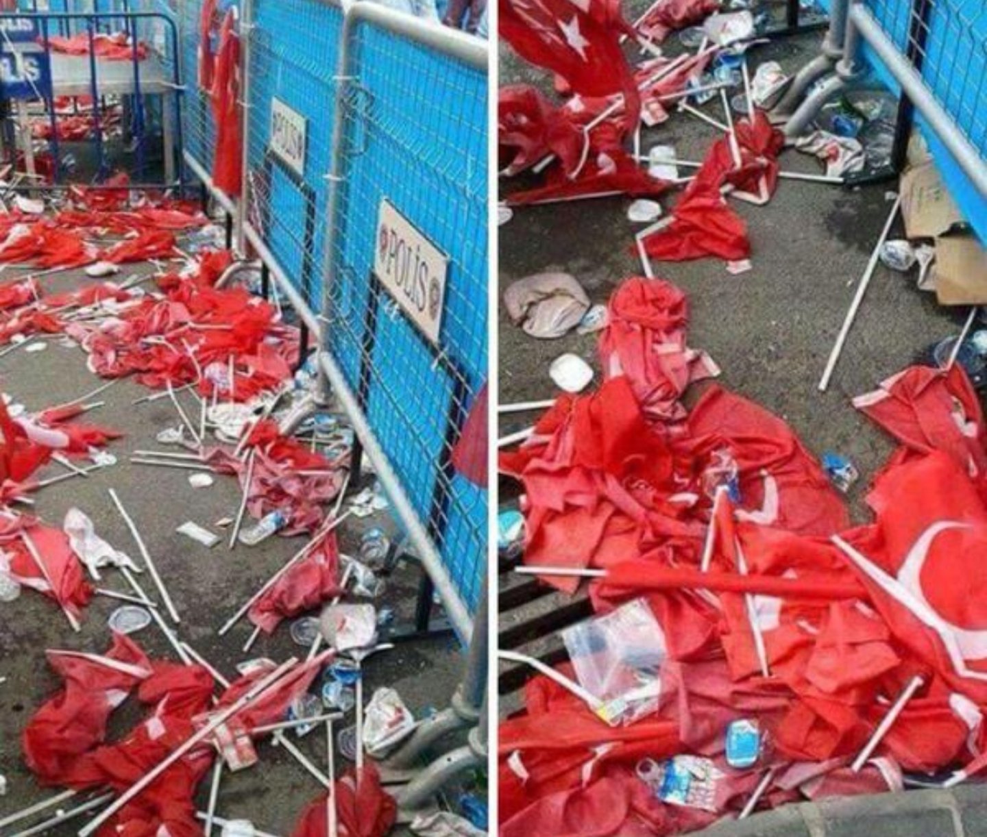 Yerde Türk bayraklarının göründüğü fotoğrafın Millet İttifakı'nın 30 Nisan 2023'te İzmir'de düzenlediği mitingin ardından çekildiği iddiası yanlış.