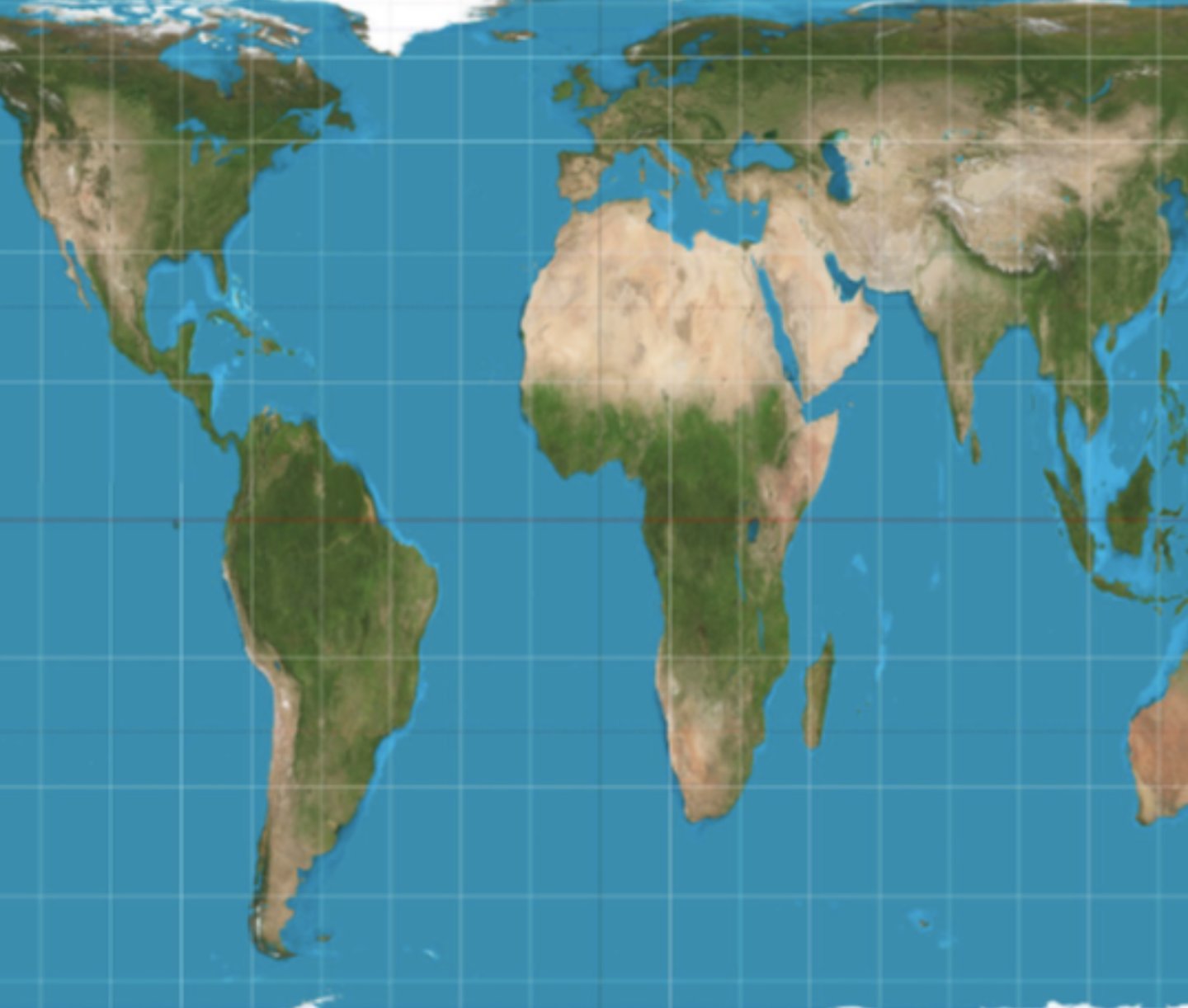 Mercator projeksiyonu (Kaynak: https://www.axismaps.com/guide/map-projections)