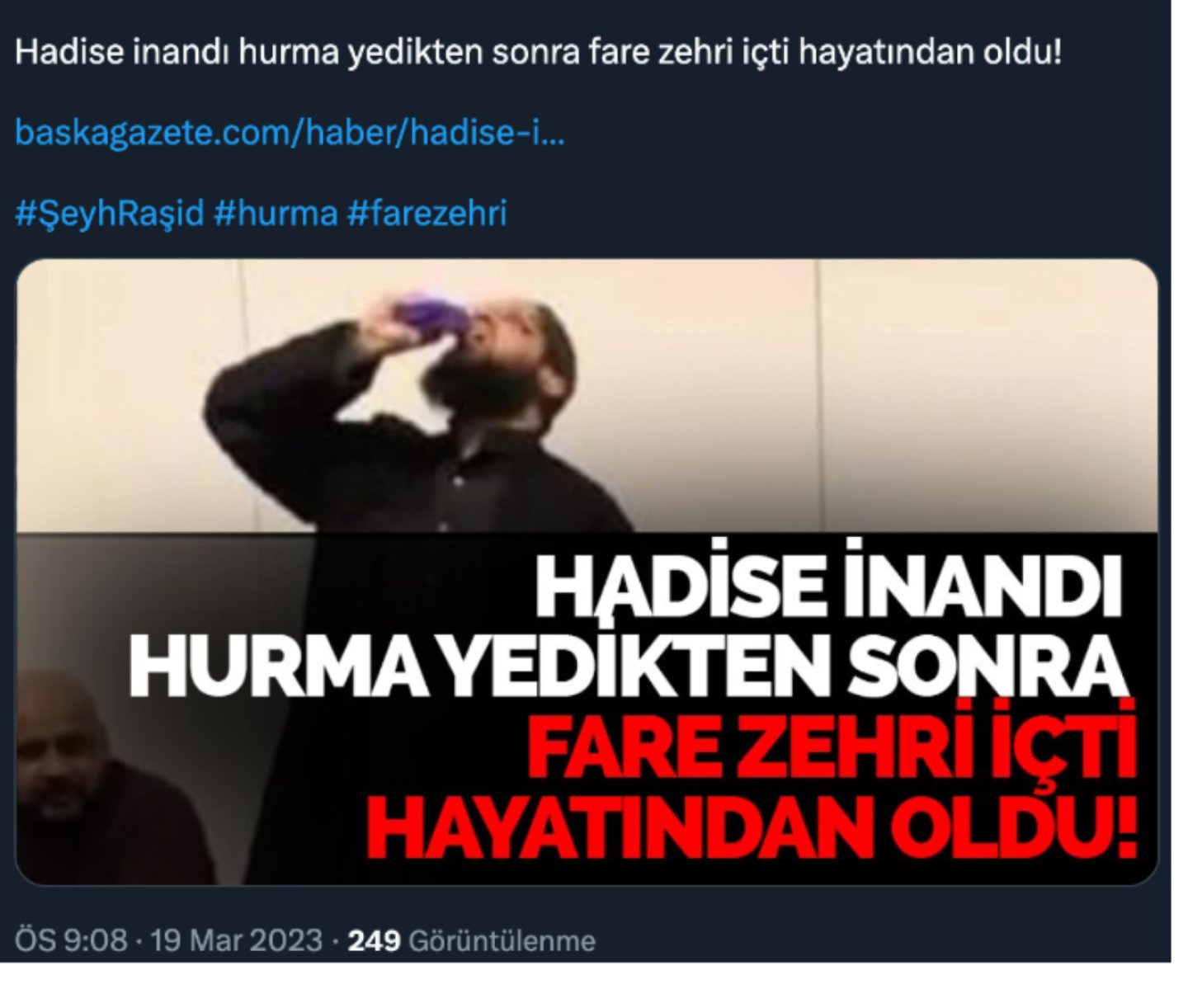 “7 adet hurma yiyen birine zehir ve sihir işlemez” dedikten sonra hurma yiyip fare zehiri içen Asrar Raşid’in öldüğü iddiası yanlış.