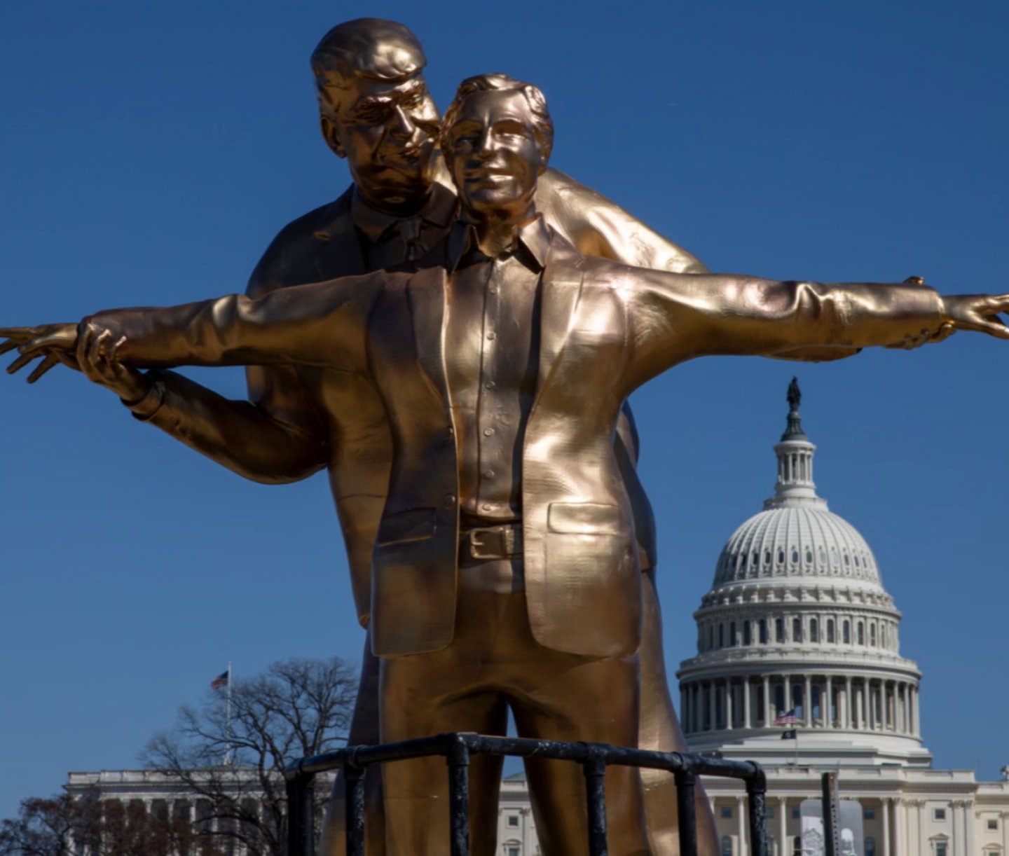 ABD Başkanı Donald Trump ile Jeffrey Epstein’i gösteren heykel ABD’nin başkenti Washington’da bulunan National Mall parkında The Secret Handshake adında anonim bir grup tarafından hazırlanmış.