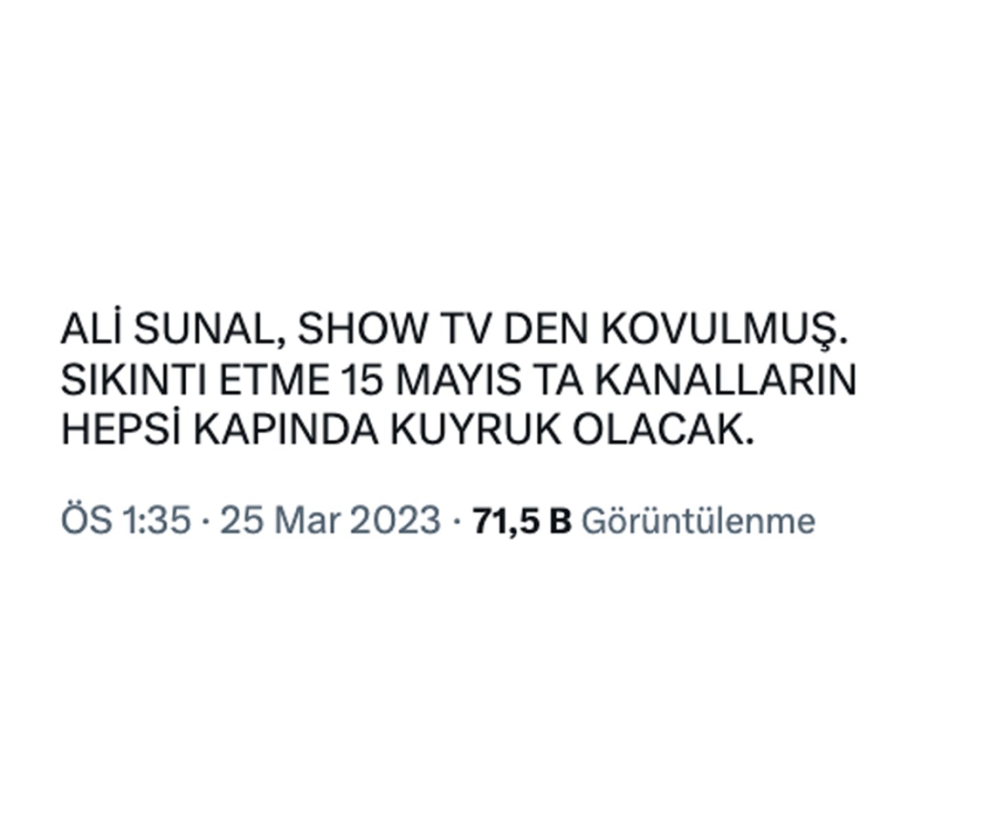 Bir Twitter hesabı tarafından 25 Mart 2023 tarihinde yapılan paylaşımda Ali Sunal’ın Güldür Güldür Show’dan kovulduğu iddia edildi.