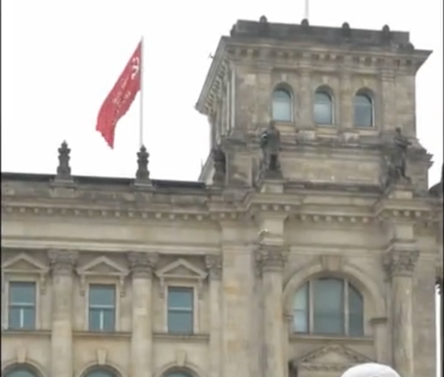 Bir Twitter hesabından 8 Mayıs 2023 tarihinde yapılan paylaşımdaki videonun, Almanya'nın başkenti Berlin'deki tarihi devlet binasına Sovyetler Birliği’nin 2. Dünya Savaşın’daki zaferini simgeleyen bayrağın asıldığını gösterdiği iddia edildi.