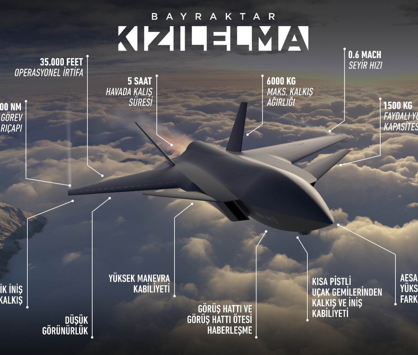 Baykar Teknoloji'nin geliştirdiği jet motorlu insansız savaş uçağı Bayraktar Kızılelma, ilk uçuşunu 14 Aralık 2022’de tamamladı. Radar izi düşüren teknik ve tasarım ile donatılı Kızılelma'nın, gelişmiş manevra kabiliyetine sahip olduğu belirtiliyor.