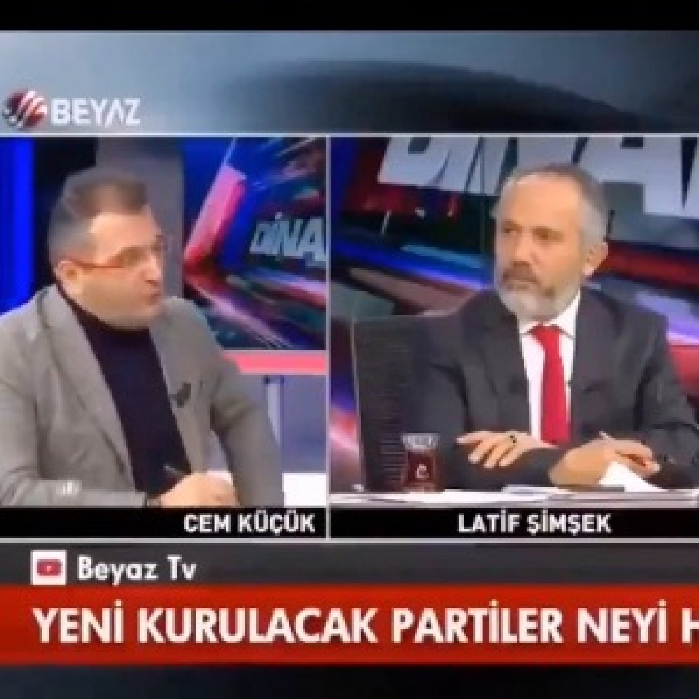 Kemal Kılıçdaroğlu’nun adaylığının açıklanması haber kanallarında ve sosyal medyada günün en çok konuşulan konusu haline geldi. Bu süreçte Twitter’da, Beyaz TV’de yayınlanan Dinamit programından alınan bir kesit, adaylık açıklaması sonrasını gösterdiği iddiasıyla sıklıkla paylaşıldı. Cem Küçük, Latif Şimşek ve Mehmet Metiner’in yer aldığı videoda Erdoğan karşıtı birisinin seçilme ihtimali ele alınırken AK Parti’ye yakınlığıyla bilinen Cem Küçük, “Biz dahil herkes yargılanır. Seri bir tutuklama yaparlar.” cümlelerini kuruyor. Programın KJ’sinde ise “Yeni Kurulacak Partiler Neyi Hedefliyor?” yazısı dikkat çekiyor.