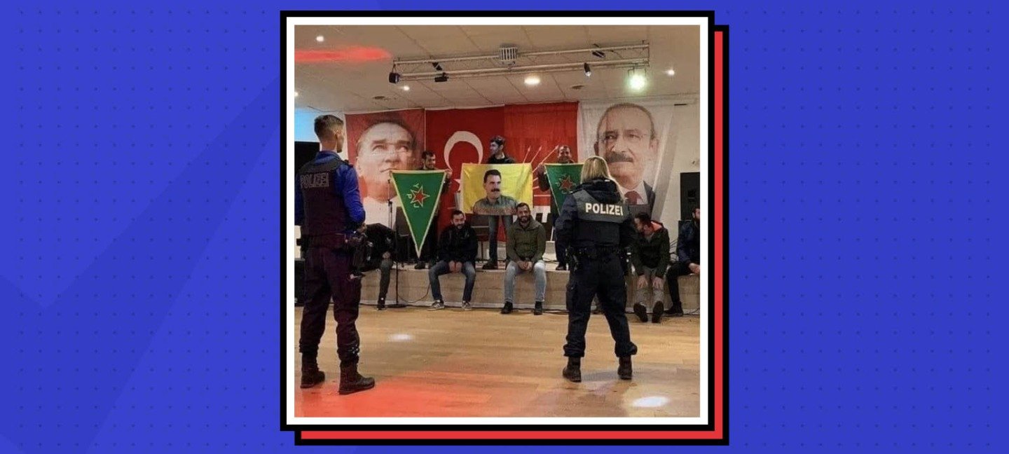 Cumhuriyet Halk Partisi’nin düzenlediği etkinlikte Abdullah Öcalan’ın posterinin CHP tarafından asıldığı iddiası doğru değil. Poster dışarıdan etkinliğe izinsiz gelen bir grup tarafından salona getirilmiş. Ayrıca, paylaşılan gönderide yer alan etkinlik CHP’nin Almanya Kongresi de değil. Bu fotoğraf, 3 Kasım 2019 tarihinde Cumhuriyet Halk Partisi’nin İsviçre Birliği’nin “Cumhuriyet Bayramı’nı Kutlama” başlığı altında Grenchen kentinde gerçekleşmiş bir etkinlik.