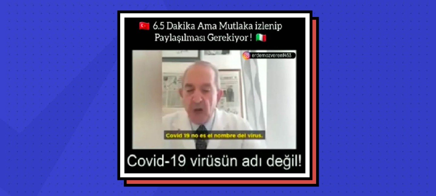 Bir Instagram sayfasında paylaşılan videoda İtalyan bir doktor COVID-19’un bir hastalık isminin kısaltması olmadığını ve COVID-19 testlerinin hastalığa yol açan virüsü tespit etmekte etkisiz olduğunu iddia etmiş. Dünya Sağlık Örgütü’nün açıklamaları incelendiğinde COVID-19’un Coronavirüs Disease 2019 (Koronavirüs Hastalığı 2019) ifadesinin kısaltması olduğu görülüyor. COVID-19 testlerinin ne kadar etkili olduğuna yönelik bilimsel tartışmalar olsa da videoda iddia edildiği gibi bu testlerin COVID-19’a neden olan virüsü tespit edemediğini ifade eden bir çalışma ya da açıklama bulunmuyor. Resmi sağlık kurumlarının açıklamaları ve bilimsel araştırmalar ışığında görüldüğü üzere, COVID-19’un hastalığın isminin kısaltması olmadığı ve koronavirüs testlerinin etkisiz olduğu iddiaları yanlış.