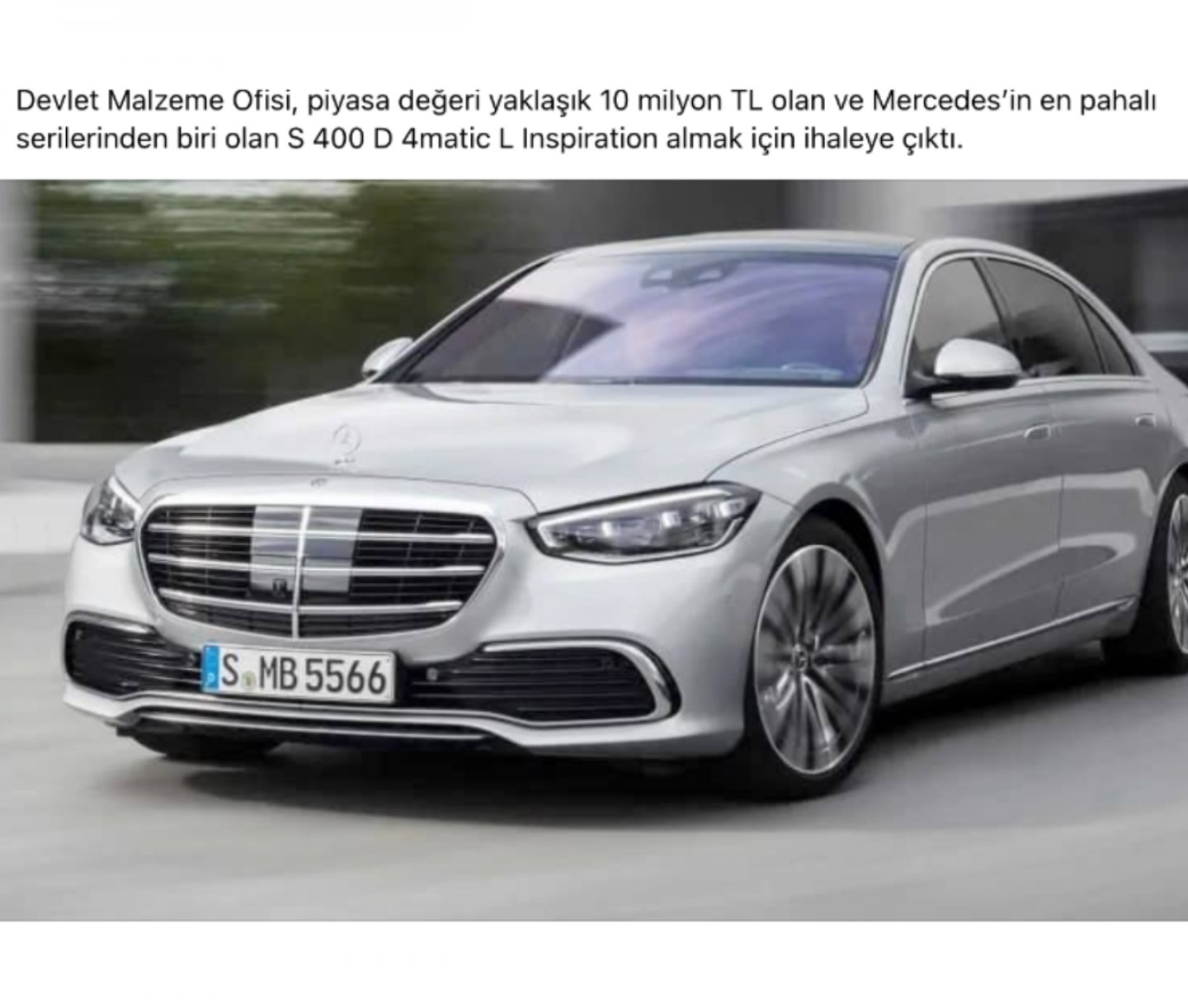 Devlet Malzeme Ofisi'nin piyasa değeri yaklaşık 10 milyon TL olan Mercedes Benz’in S 400 D 4matic L Inspiration almak için ihaleye çıktığı iddiası doğru.