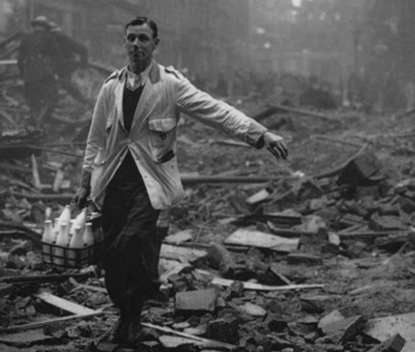 Fotoğrafın, 2. Dünya Savaşı sırasında Londra’da patlama sonrası işine devam eden bir sütçüyü gösterdiği iddiası yanlış.