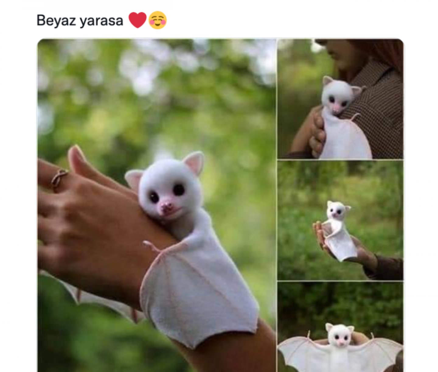 Fotoğrafta görülen “beyaz yarasa” bir oyuncak. Yastrejembovskaya paylaşımında bu ürünün satıldığını fakat şu an sipariş almadığını belirtmiş. Anna Yastrejembovskaya’ın Instagram hesabında da bu ve bunun gibi benzer oyuncakları tasarladığı görülebilir. Yastrejembovskaya, oyuncak beyaz yarasa fotoğrafını son olarak, 30 Ekim 2021 tarihinde paylaşmış. Fotoğrafa ise “Beyaz albino yarasa. Bu yapacağım son çalışma olacak. Etsy mağazada mevcut.” ifadesini eklemiş.