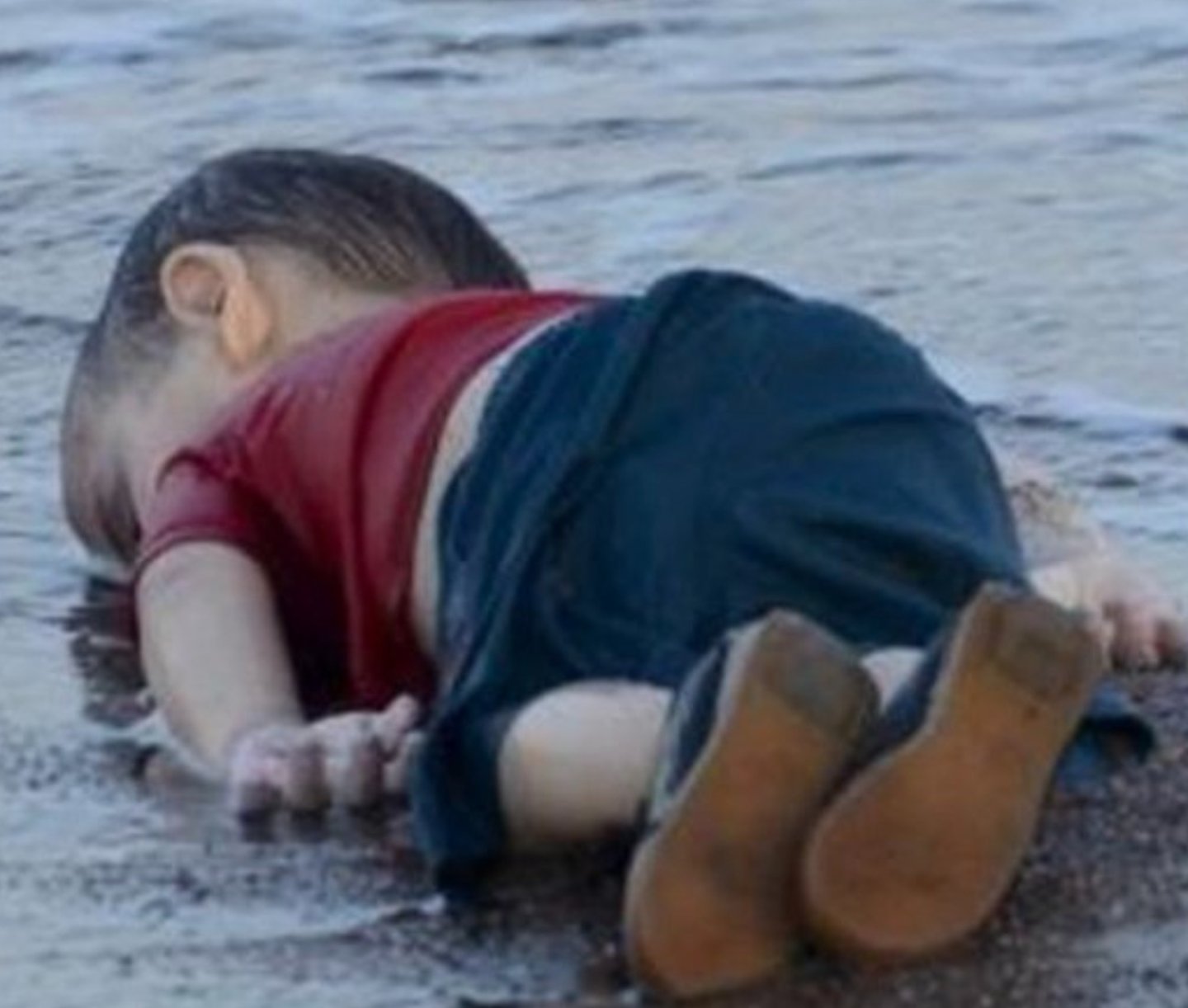 Fotoğraf 2015 yılında Ege Denizi’nde bir mülteci botunun batması nedeniyle cesedi Bodrum kıyılarına vuran Aylan Kurdi’yi gösteriyor.