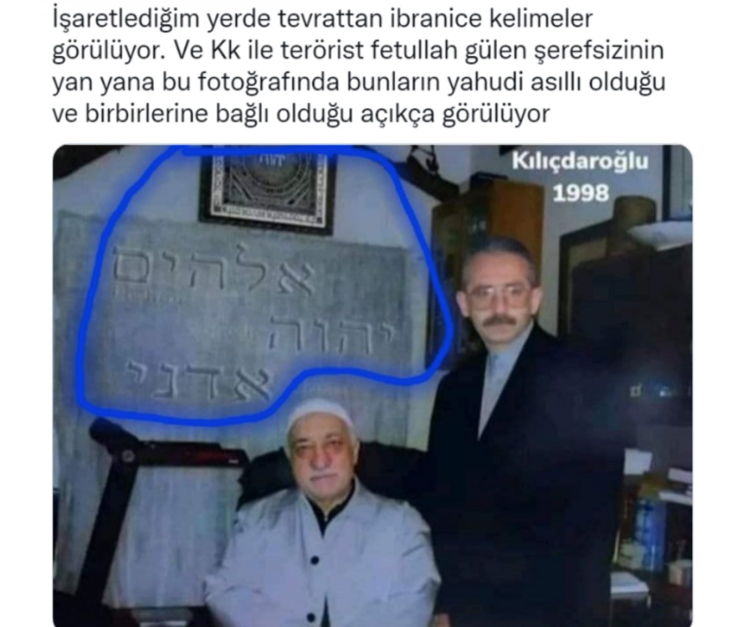1998 yılından olduğu iddia edilen fotoğrafta Fethullah Gülen oturarak Kemal Kılıçdaroğlu ise ayakta gözüküyor. Fotoğrafın arka planında ise bir tablonun altında İbranice ifadeler göze çarpıyor.