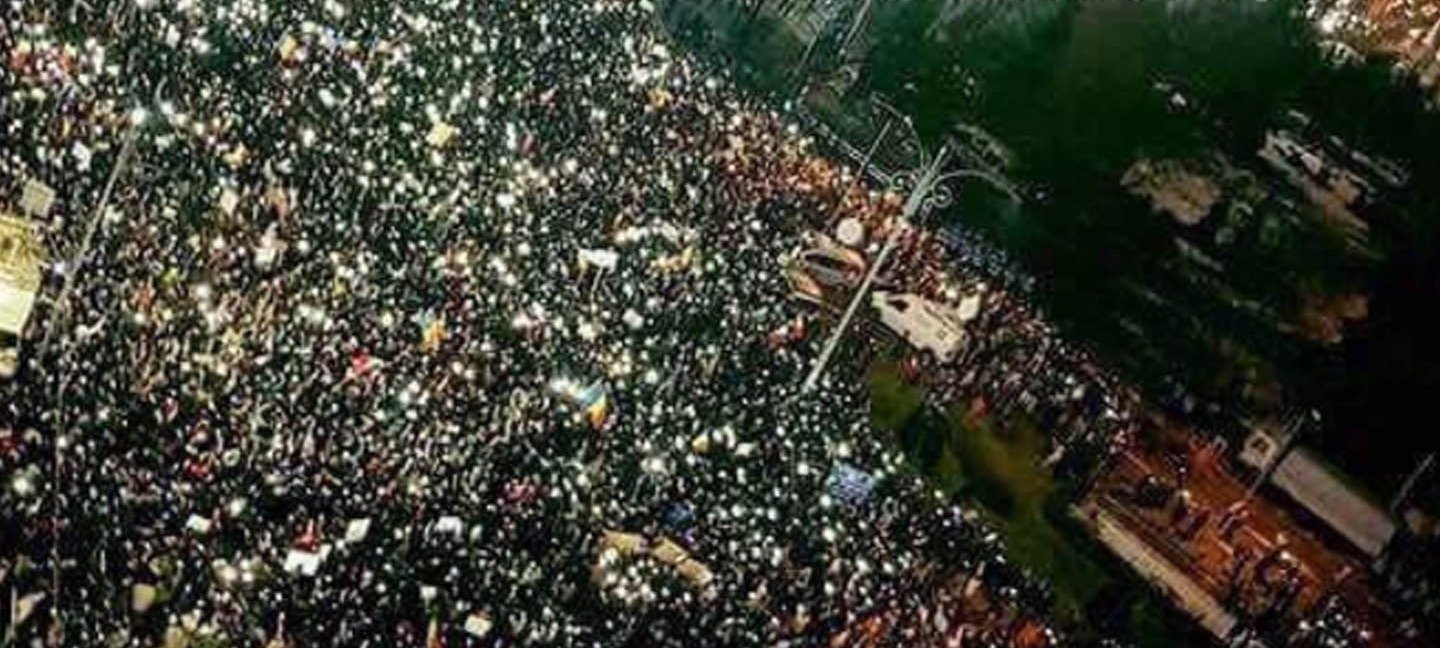 Fotoğraf, 5 Şubat 2017'de jeopolitik analist ve yazar Koert Debeuf tarafından Twitter’da paylaşıldı. Debeuf, fotoğrafın üstüne şunları yazmıştı: “Vay canına. Bu gece Bükreş, Romanya. İnsanlar hükümetten gitmesini istiyor .”