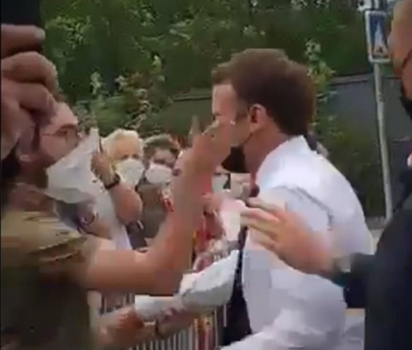Geçtiğimiz hafta sosyal medyada birçok kullanıcı Emmanuel Macron’a tokat atıldığına dair videolar paylaştı. Videoda yeşil tişörtlü ve uzun saçlı birinin Macron’a tokat attığı, ardından Macron’un korumalarının kişiye müdahele ettiği görülüyor.