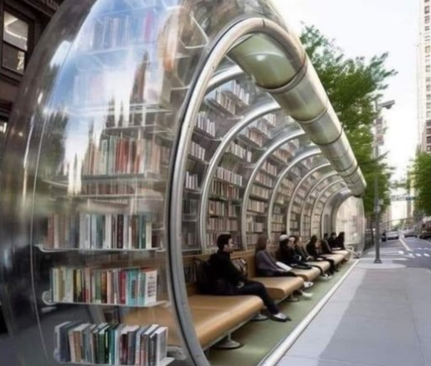 Bir Facebook hesabı tarafından 12 Nisan 2023 tarihinde yapılan paylaşımda görselin Belçika’daki kütüphaneli bir otobüs durağından olduğu iddia edildi. İddianın Twitter ve LinkedIn gibi farklı sosyal medya platformlarında da yayıldığı görülmekte. Ancak görsel Ulises adlı dijital tasarım stüdyosu tarafından yapay zeka programı Midjourney aracılığıyla üretilmiş. AFP Brezilya ve Chequedo tarafından yapılan doğruluk kontrolleri de görsellerin Almanya veya Belçika’dan olmadığını belirterek görselin yapay zekayla üretildiğini vurguluyor.