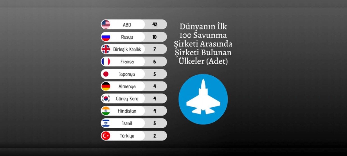 Görselin dünyanın en büyük 100 savunma şirketinin ülkelere göre dağılımını gösterdiği iddiası verilerle desteklenmiyor.