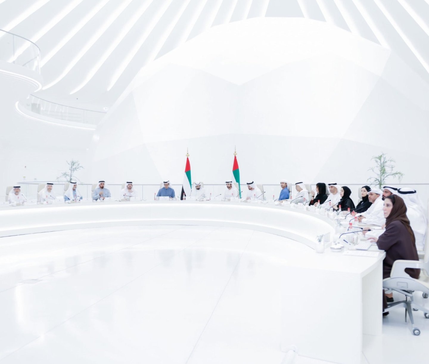 Sosyal medyada dolaşıma giren bazı görüntülerde, futuristik ve tamamen beyaz renklerdeki bir mekanda gerçekleştirilen bir toplantının Birleşik Arap Emirlikleri’nin (BAE) kabine toplantı salonu olduğu öne sürüldü. Görüntülerin estetik ve dikkat çekici olması, bu iddianın kısa sürede yayılmasına neden oldu. 29 Mart 2026 tarihinde yapılan kabine toplantısı gerçekten bu mekanda yapılmış olsa da, BAE’nin kabine toplantı salonu bu beyaz futuristik mekan değil.