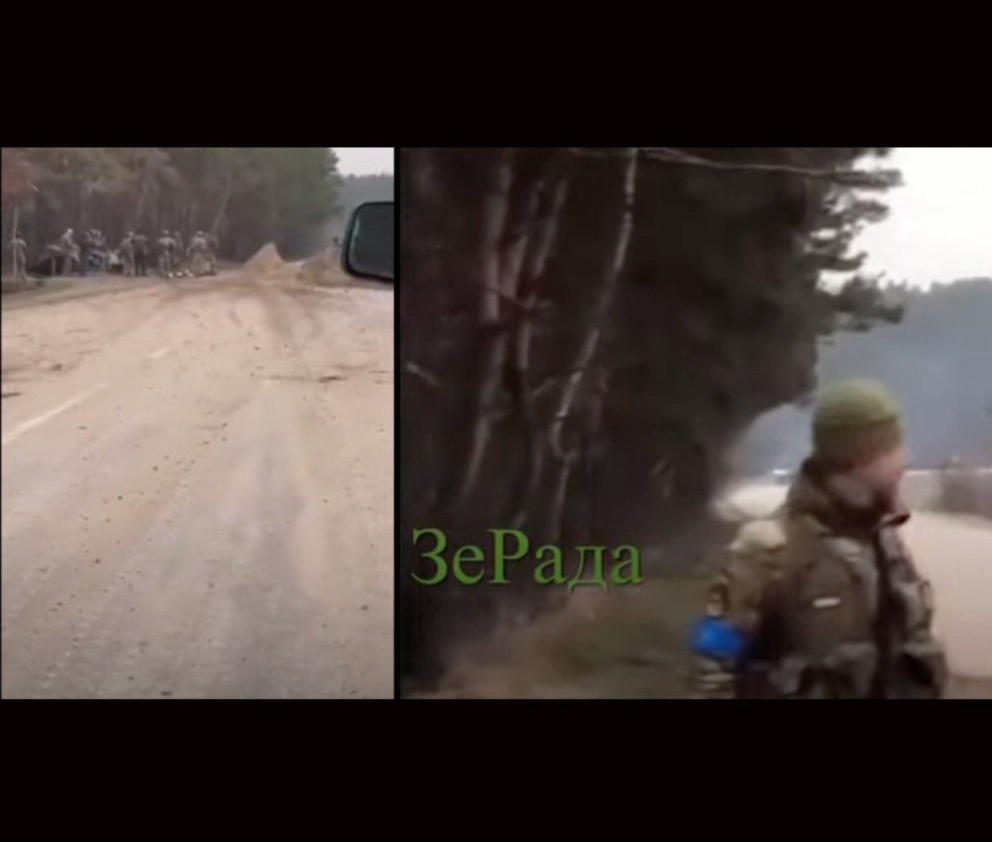 11 Nisan 2022 tarihinde dolaşıma giren videoda, bir grup Ukraynalı asker hasar görmüş bir tankın yanında beklerken yaklaşan bir tank ateş ediyor. Yabancı kaynaklarda Ukraynalı askerlerin tepki vermemesinin sebebinin yaklaşan tankın Ukraynalı olduğu sanılması olarak gösterilmiş. Arama sonuçlarında çıkan Youtube kaynaklı diğer videoda da bekleyen grubun bakış açısından bir kesit paylaşılmış. İkinci videoda gömülü olarak Kiril alfabesiyle yazılmış bir yazı görülüyor ve askerlerin Ukraynaca konuştuğu duyulabiliyor.