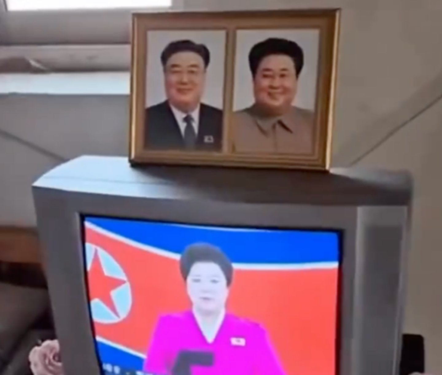 Videonun ilk saniyelerinde görülen televizyon ve çerçevedeki kişilerin de Kuzey Kore liderleri Kim Il Sung ve Kim Jong Il ile uyuşma göstermediği dikkat çekiyor.