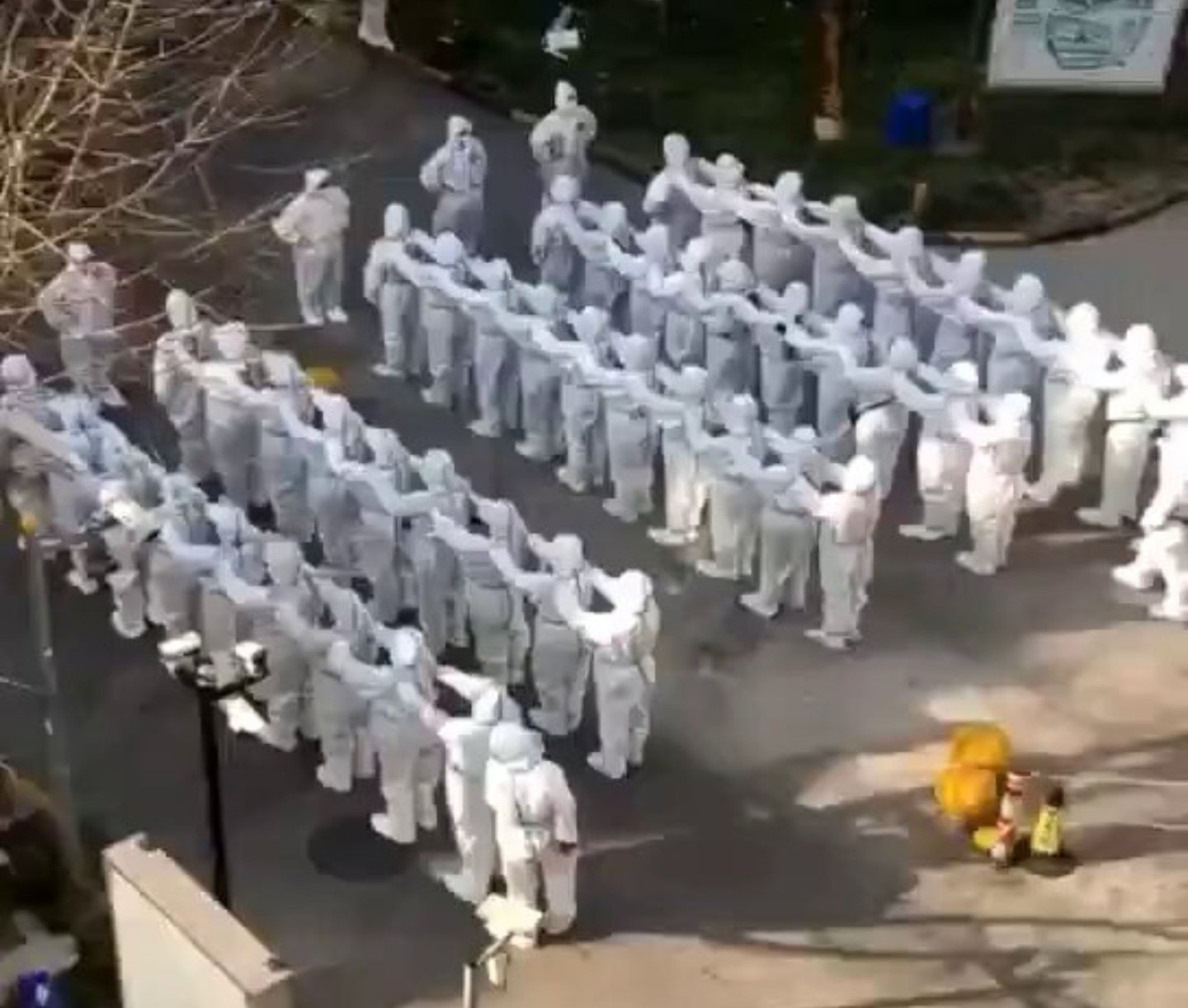Bir X hesabı tarafından 24 Ekim 2024 tarihinde yapılan paylaşımdaki videonun karantina kıyafetleri giymiş bir grup insanın ikinci salgına yönelik güncel hazırlıklarını gösterdiği iddia edildi.