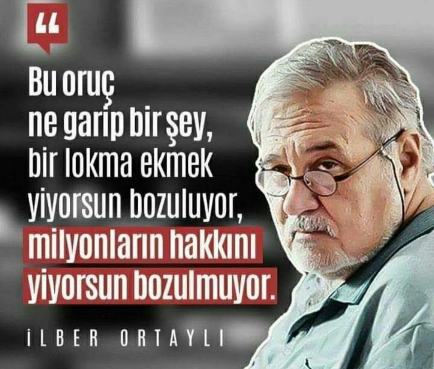 İlber Ortaylı'nın “Bu Oruç Ne Garip Bir Şey Bir Lokma Ekmek Yiyorsun Bozuluyor Milyonların Hakkını Yiyorsun Bozulmuyor” dediği iddiası yanlış.