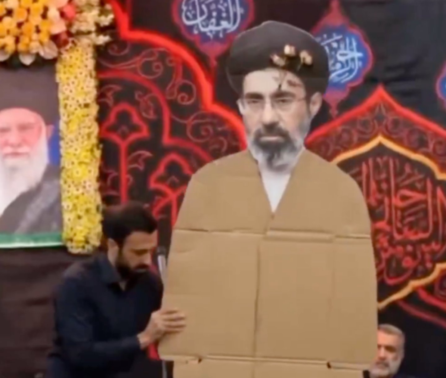 İran'da bir törende Mücteba Hamaney'in karton maketinin sergilendiği iddiası yanlış.