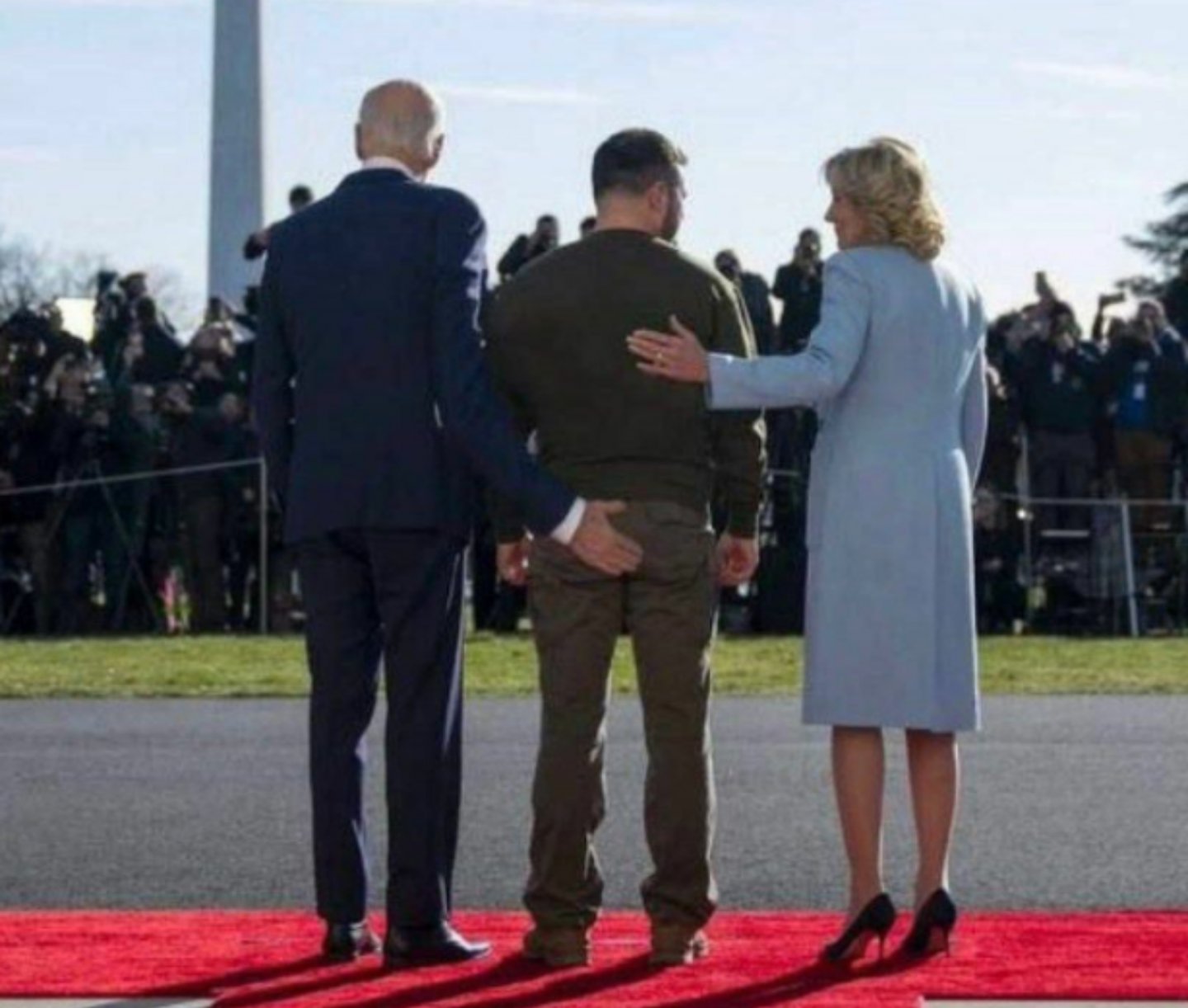 Ukrayna Devlet Başkanı Volodymyr Zelenski’nin ABD Başkanı Joe Biden ile 21 Aralık'ta Vaşington’da yaptığı görüşmede, Jill Biden'ın da yer aldığı bir fotoğraf karesi sosyal medyada yüksek derecede etkileşim almaya başladı. Yayılmakta olan fotoğraf karesinde, kameralara poz veren üçlünün arkadan çekilmiş bir fotoğrafı yer alıyor ve Joe Biden’ın Zelenski’ye uygunsuz bir biçimde dokunduğu iddia ediliyor. Fotoğraf, sosyal medya kullanıcıları arasında alaycı ifadeler kullanılarak paylaşılıyor. Örneğin iddianın 5 bini aşan beğeni ve 150 binden fazla görüntülenme alan bir versiyonunda, “Zelenski, Biden'a tüm iyiliklere nasıl karşılık vereceğini sorduğunda” şeklinde bir ifade kullanılmış.