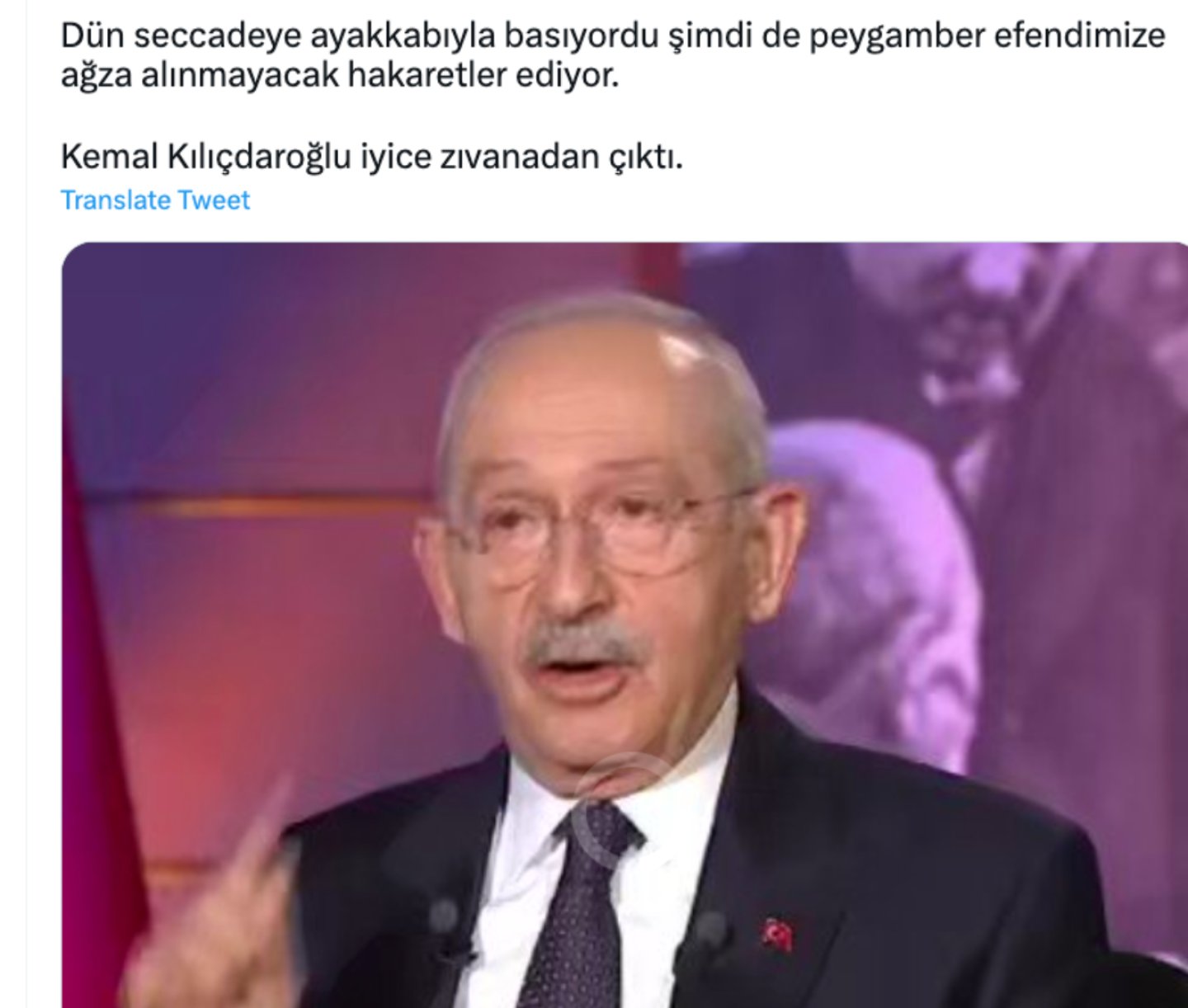 Bir Twitter hesabı tarafından 5 Nisan 2023 tarihinde paylaşılan videoda, CHP Genel Başkanı ve 2023 Seçimleri’nde Millet İttifakı’nın Cumhurbaşkanı Adayı Kemal Kılıçdaroğlu'nun katıldığı bir programda Hz. Muhammed’e "dilsiz şeytan" dediği iddia edildi.