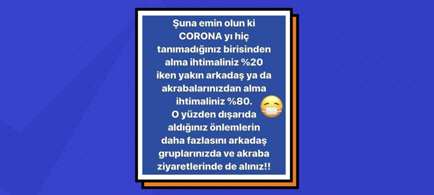 Koronavirüsü yakın arkadaş ve akrabalardan alma ihtimalinin %80, hiç tanınmayan birinden alma ihtimalinin %20 olduğu iddiası