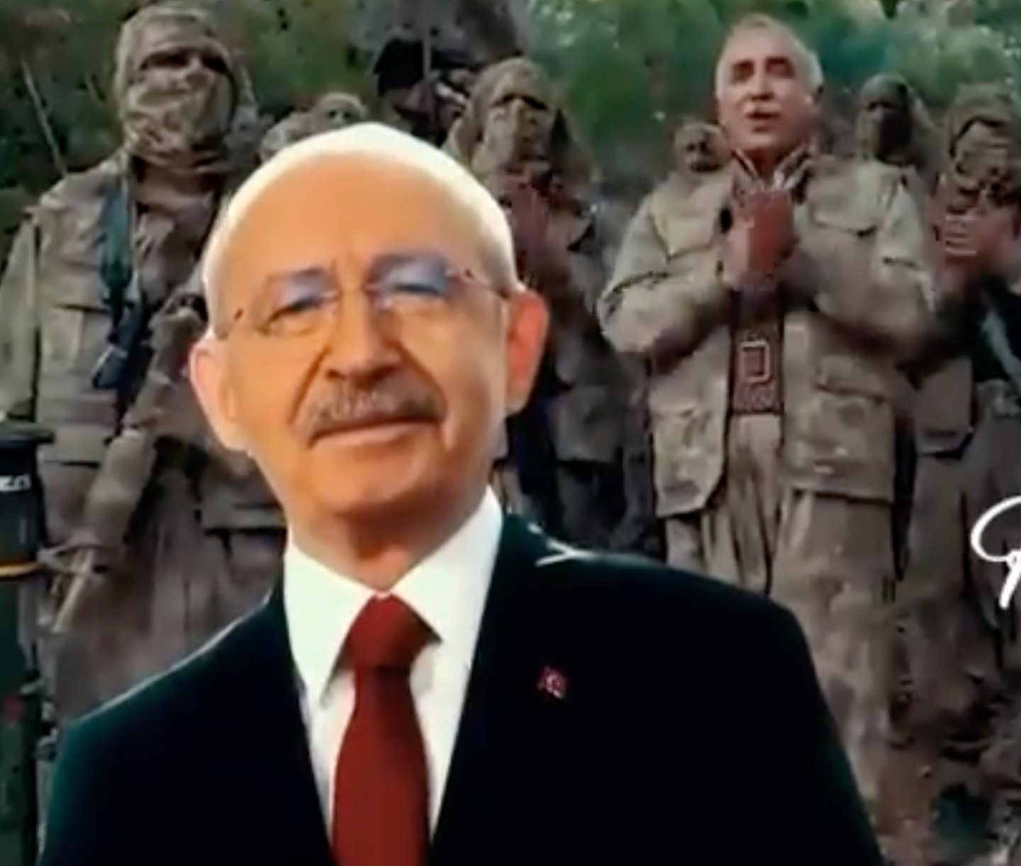 Videoda “haydi” seçim kampanyasına uyumlu olacak şekilde önce Kemal Kılıçdaroğlu, ardından PKK lideri Murat Karayılan, kampanyanın bir parçasıymış gibi gözüküyor. Görüntüler montaj ile oluşturulmuş ve gerçek değil.