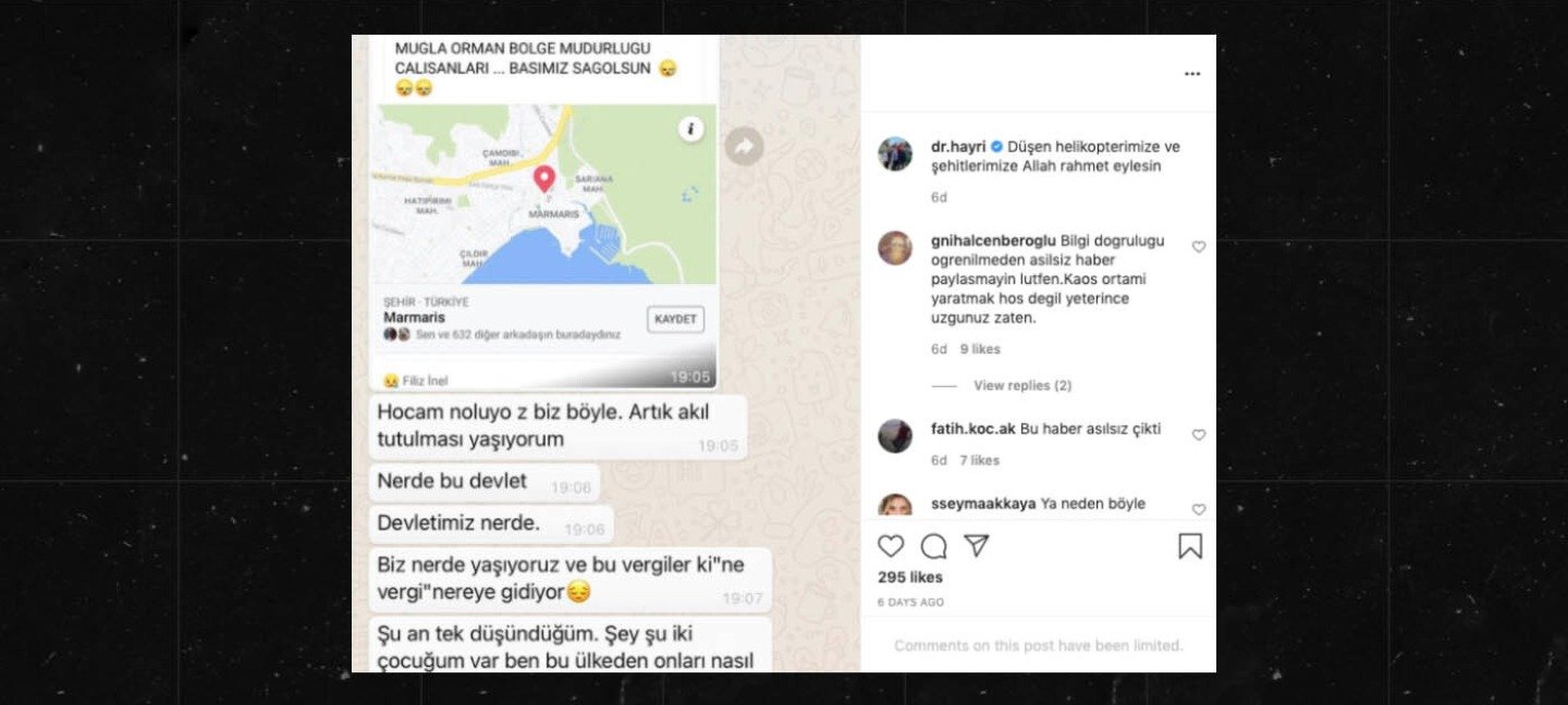 Bir Instagram sayfası tarafından 4 Ağustos 2021 tarihinde yapılan paylaşımda Muğla’da bir yangın söndürme helikopterinin düştüğü iddia edildi.