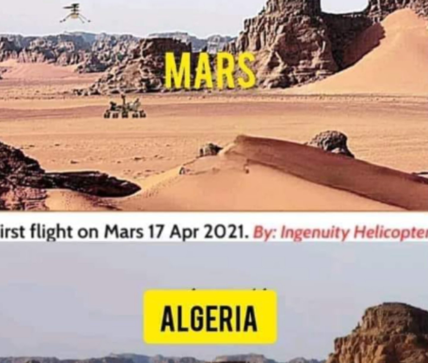 Bir Facebook hesabı tarafından 13 Ağustos 2024 tarihinde paylaşılan gönderide NASA tarafından paylaşılan Mars yüzeyini gösteren fotoğrafın aslında Cezayir’den olduğu iddia edildi.
