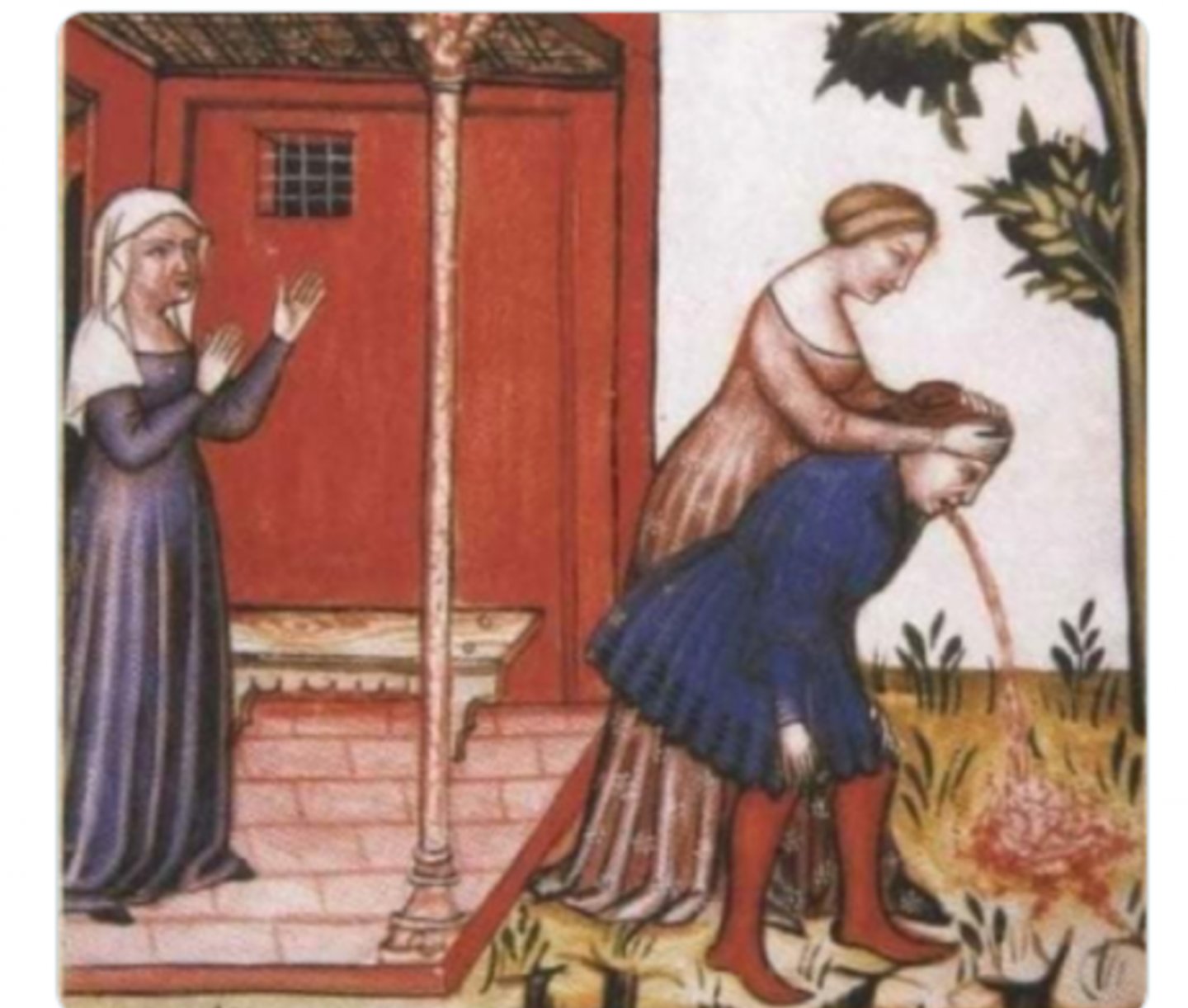 Bir Twitter hesabı tarafından 29 Ocak 2022 tarihinde paylaşılan fotoğrafta ortaçağda kadınların eşlerine düşük dozlu zehir vererek akşamları eşlerinin eve geri dönmesine sebep olduğu ve panzehir vererek iyileşmelerini sağladığı iddia edildi.