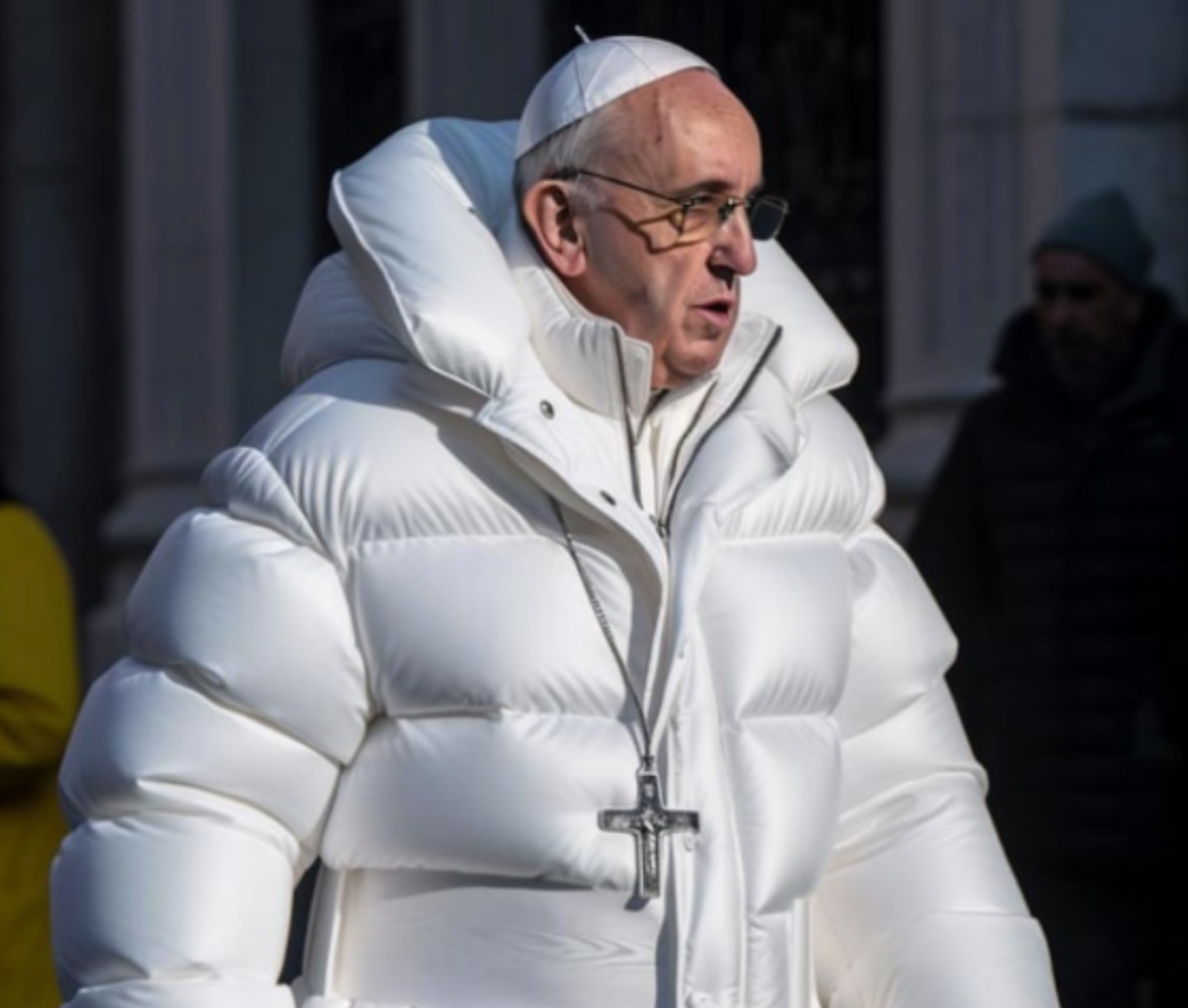 Bir Twitter hesabı tarafından 25 Mart 2023 tarihinde Papa Francis'in paylaşımdaki gibi beyaz montla fotoğraflandığı iddia edildi.