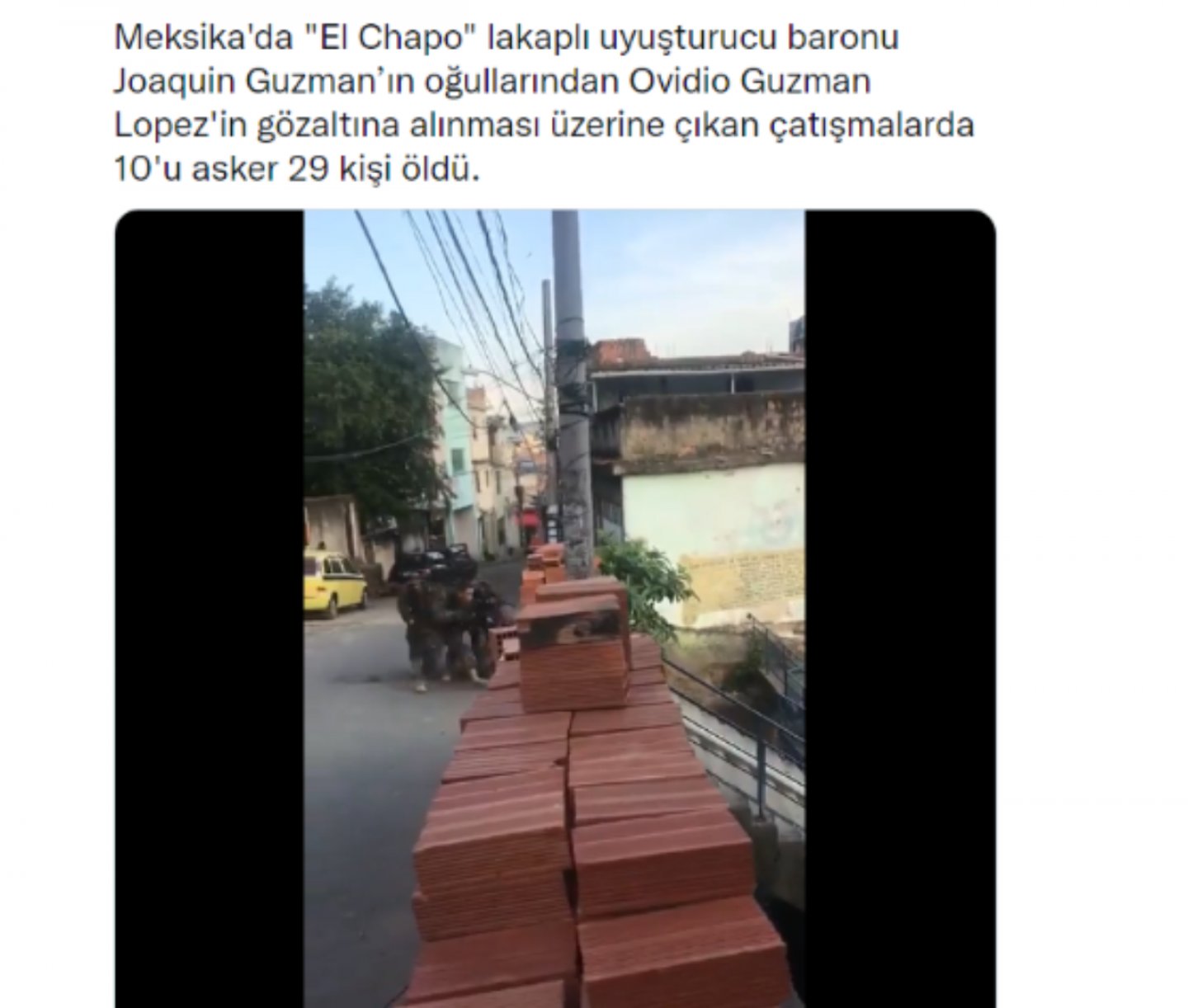 Paylaşımdaki görüntülerin Ovidio Guzman'ın yakalanmasının ardından yaşanan çatışmalara ait olduğu iddiası yanlış.