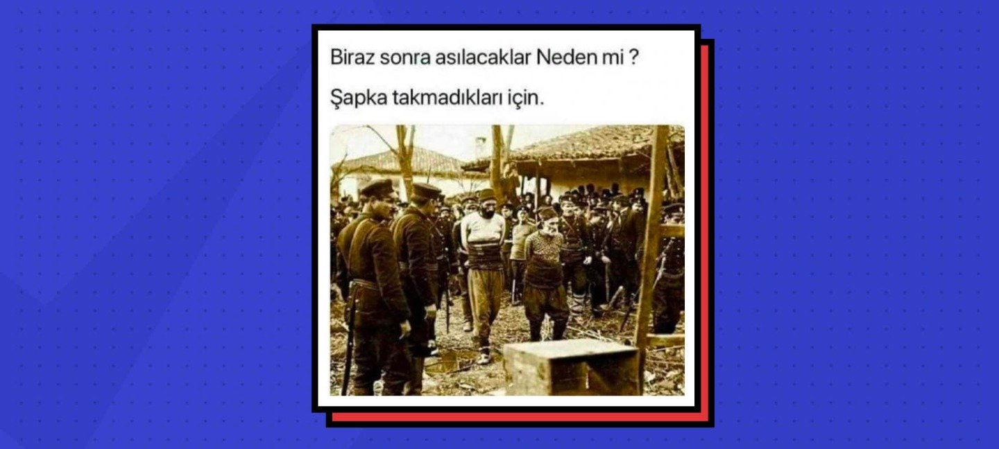 Bir Facebook sayfası tarafından 12 Kasım 2020 tarihinde paylaşılan fotoğrafın Şapka Kanunu'na uymamamaları nedeniyle asılacak iki kişinin son anlarını gösterdiği iddia edildi. Gönderi 152 binden fazla görüntülenme 2 binden fazla paylaşım almış.