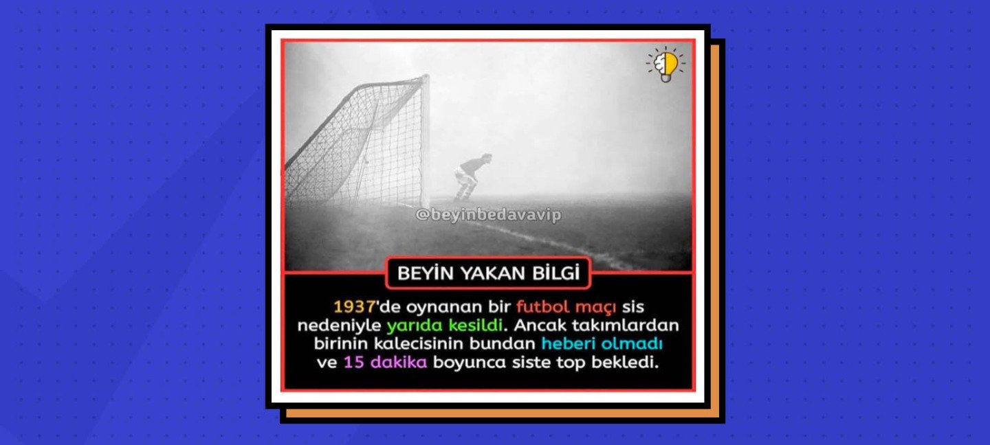 1937’de oynanan bir futbol maçı sis nedeniyle yarıda kesildi. Ancak takımlardan birinin kalecisinin bundan haberi olmadı ve 15 dakika boyunca siste top bekledi.