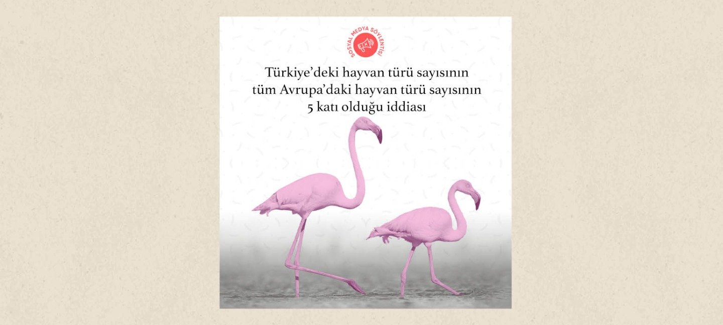 Bir Instagram sayfası yaptığı paylaşımda Türkiye’deki hayvan türünün tüm Avrupa’daki hayvan türünün 5 katı olduğunu iddia etmiş. Paylaşım 1.200’den fazla beğeni almış, son 24 saatte 17 binden fazla defa görüntülenmiş.