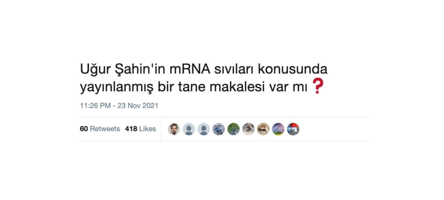 23 Kasım 2021 tarihinde bir Twitter kullanıcısı tarafından Uğur Şahin’in mRNA aşıları hakkında yayımlanmış bilimsel makalesi olmadığı iddia edilmişti. İddia incelendiğinde ise Uğur Şahin’in dünyanın en saygın dergilerinde olmak üzere gerek kanser üzerine gerek mRNA aşıları üzerine birçok bilimsel makalesi olduğu görülebiliyor.