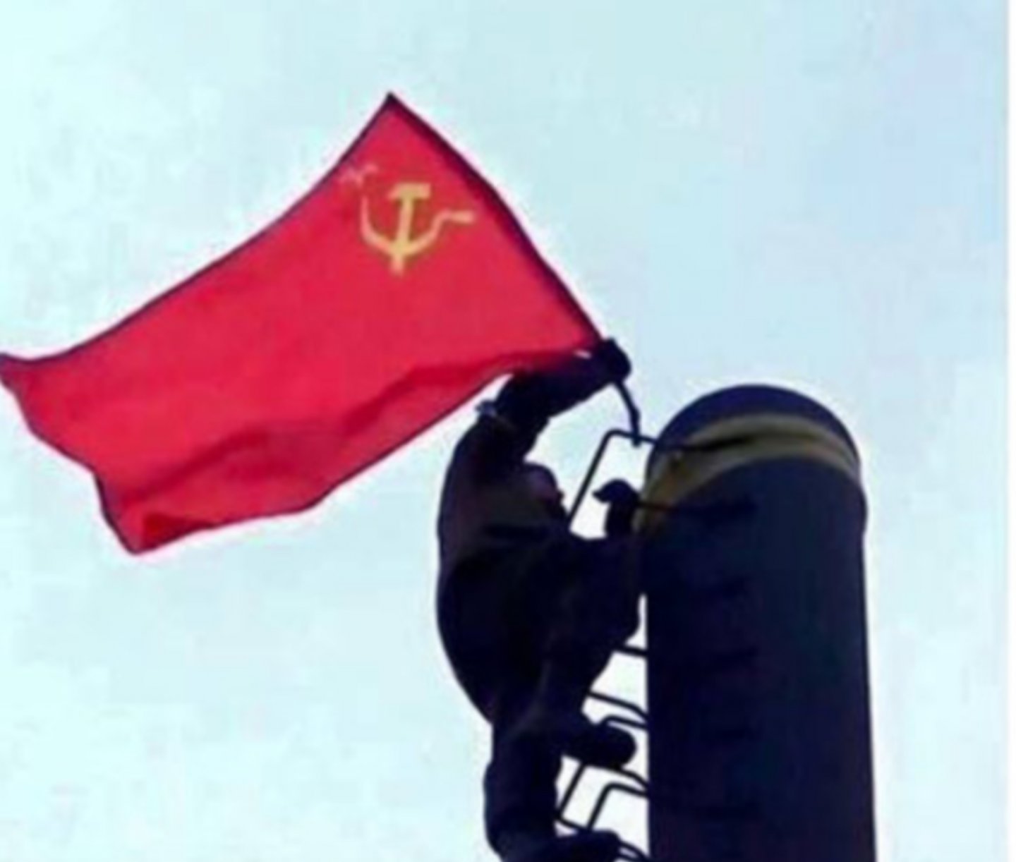 Rusya’nın Ukrayna’nın Mariupol şehrini ele geçirdikten sonra Ukrayna bayrağını indirip, Sovyetler Birliği bayrağını göndere çektiği iddiası yanlış.