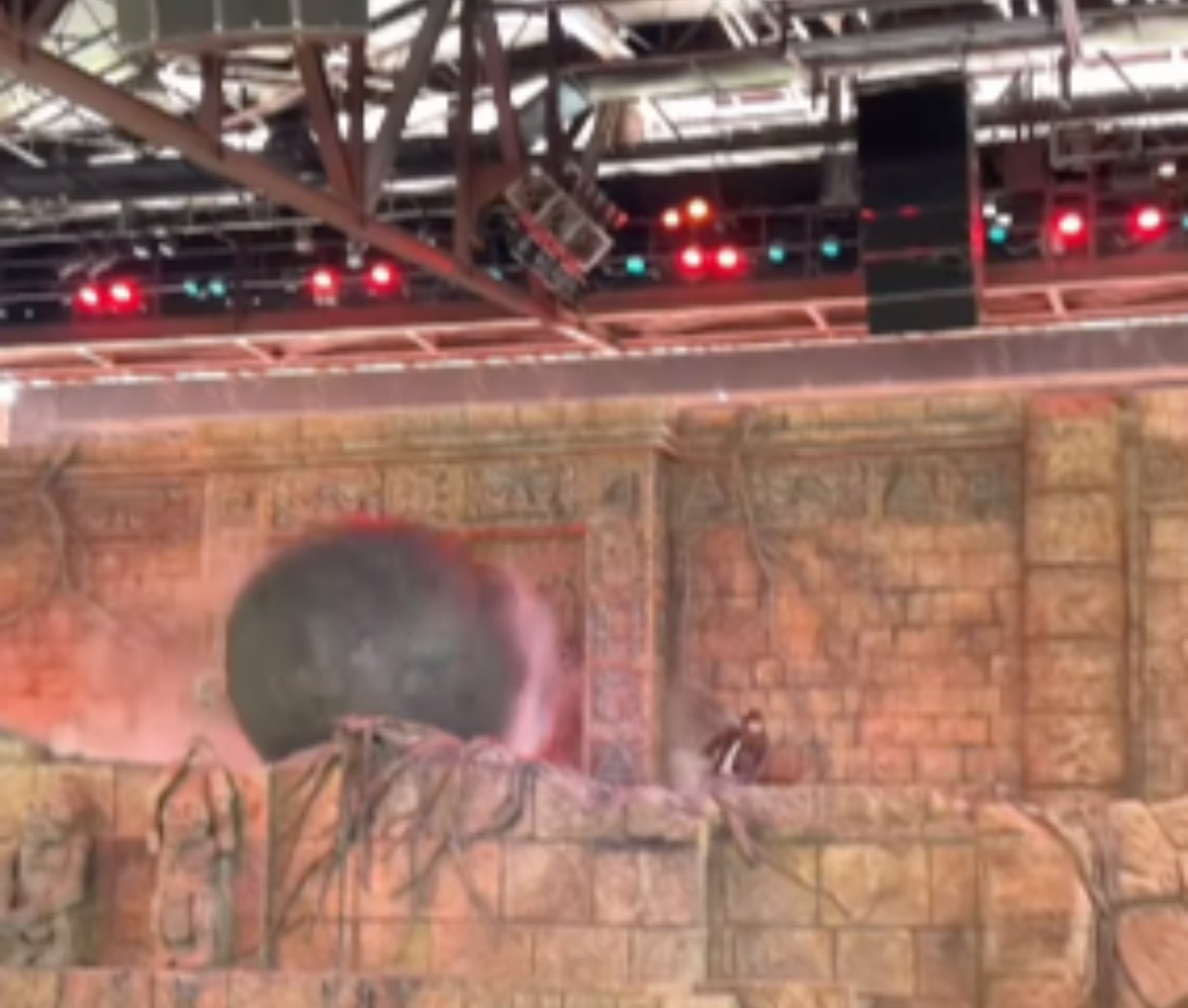 Kaza gibi gösterilen sahne aslında Disney parkında yıllardır sergilenen Indiana Jones gösterisinin parçası.