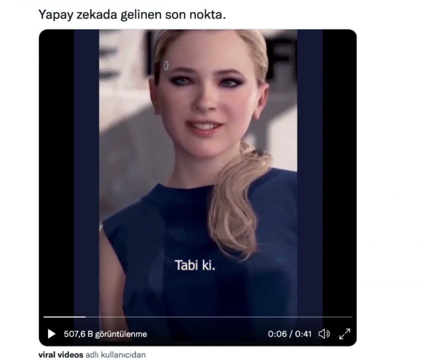 Bir Twitter hesabı tarafından paylaşılan videonun yapay zeka robotu ile yapılan bir röportajı gösterdiği iddia edildi. Chloe isimli bu yapay zeka robotu bir bilgisayar oyunundan ibaret. “Quantic Dream” isimli şirket tarafından geliştirilen ve 2018 yılında piyasaya sürülen bir macera video oyunu olan "Detroit: Become Human", robot - insan odaklı bir oyun. Oyunda tıpkı videodaki Chloe gibi gelişmiş robotlar üzerinden insanlık nedir, ruh nedir gibi konular konuşuluyor. Oyun genelinde yalnızca 1 tane olan ve yönetilemeyen Chloe, oyun boyunca asistanlık yapıyor.