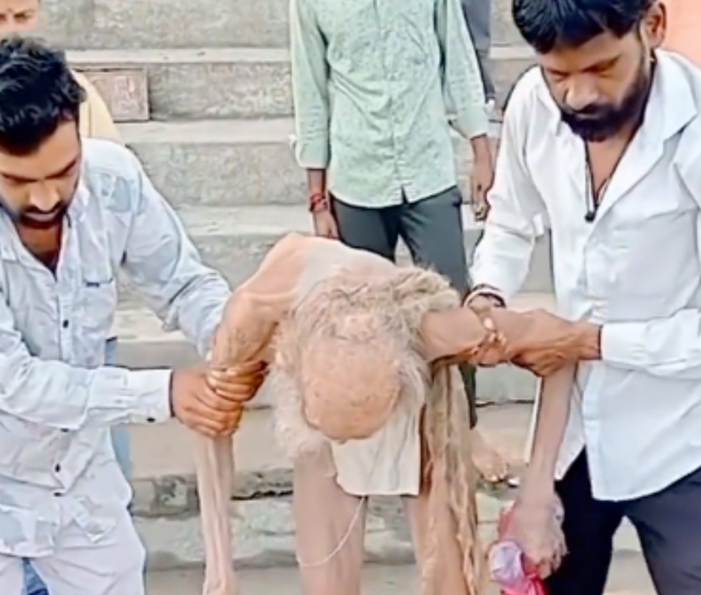 X platformunda yayılan bir paylaşımda, videonun Hindistan'da bir mağarada bulunan 188 yaşındaki bir adamı gösterdiği ve bu yaşlı adamın tedavi altına alındığı öne sürülmüş. Videoda iki kişinin desteği ile yürüyen oldukça yaşlı bir adam yer alıyor. Fakat bu adam mağaradan bulunmuş ya da kimliği belirsiz birisi değil; Hindistan’daki Khargone bölgesinde yaşayan guru Siyaram Baba.