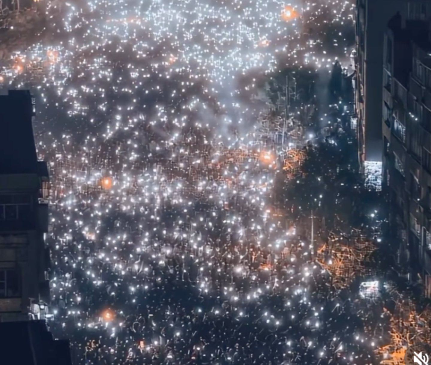 Sosyal medyada da İran yönetimine tepki giderek büyüyor, internet kullanıcıları İran’a destek için paylaşımlar yapıyor. Fakat mevcut internet ve şebeke kesintileri sebebiyle protestolardan görüntü almak pek kolay değil. Sosyal medyada yayılan bir video ise, bu protestolara desteğin simgesi haline gelen bir paylaşım oldu. Videoda ellerinde telefon ışıklarıyla karanlıkta yürüyen bir kalabalık görünüyor. Videonun üzerinde “Tüm gözler İran’da” yazıyor. Video İran’daki elektrik kesintilerine rağmen elinde ışıklarla yürüyen protestocuları gösterdiği iddiası ile paylaşılmış olsa da, görüntüler gerçek bir anı göstermiyor.