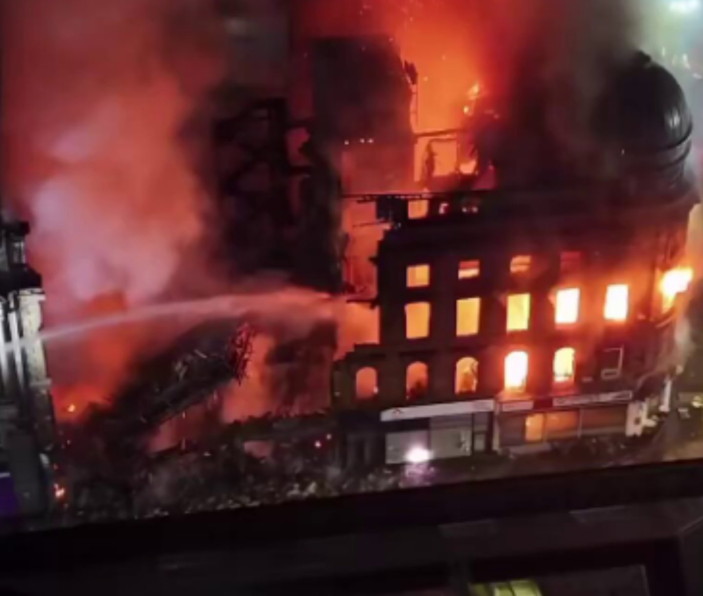 Görüntüler, 8 Mart 2026 tarihinde İskoçya'da bulunan Glasgow Merkez İstasyonu'nun yakınındaki bir binada çıkan yangını gösteriyor.
