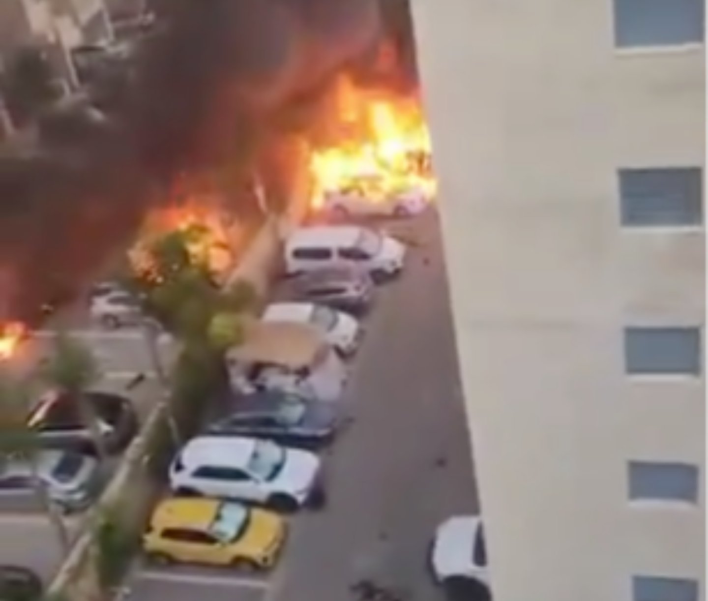 Arama genişletildiğinde ise Ashkelon’da siteye düşen roketin oluşturduğu yangının farklı bir noktadan çekilmiş görüntüsüne ulaşılabiliyor.