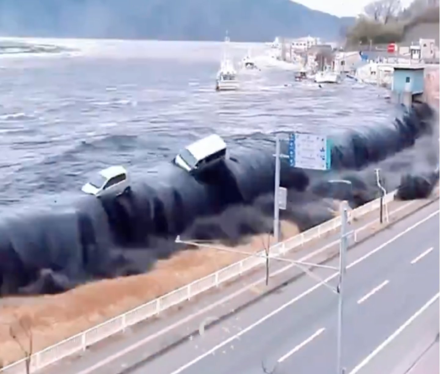 Bunlardan birisi paylaşılan videonun deprem sonrası yaşanan tsunaminin görüntülerini gösterdiği yönünde. Öncelikle Japonya’da 8 Ağustos tarihinde gerçekleşen depremde tsunami uyarıları yapılsa da videonun gösterdiği denli bir tsunami tehdidi yaşanmadığı belirtilmiş. ideodan alınan görüntüler arama motorlarının yardımıyla tersten aratıldığında, videonun 2011 tarihindeki Büyük Doğu Japonya Depremi’nden olduğu görülebiliyor. 9.0-9.1 arasında bir büyüklüğe sahip olan bu megadeprem tüm Pasifik Okyanusu’na yayılan bir tsunami yaratmış. Bu tsunaminin, depremden daha büyük bir zarara yol açtığı kaydedilmiş.