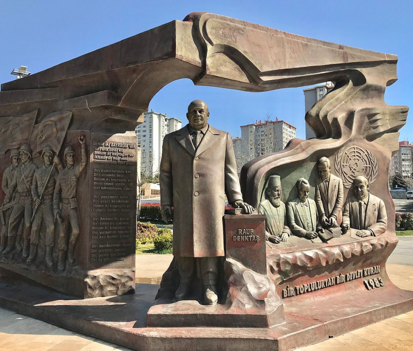 Beylikdüzü’nde yer alan ve üç bölümden oluşan Kıbrıs Anıtı heykeli incelendiğinde, sol bölümde Kıbrıs’ta savaşan mücahitler, orta bölümde Rauf Denktaş, sağ bölümde ise 1959’da imzalanan Zürih ve Londra Antlaşması’nı temsilen bir sahne yer alıyor. Bu anlaşmalar Kıbrıslı Türklerin adada resmi statüde tanınmasını sağlamıştı. Anlaşmalarda Rum tarafını Başpiskopos Makarios, Türk tarafını ise Dr. Fazıl Küçük temsil etmişti. Sahnede bu ikisi ve BM temsilcisi yer alıyor. Anlaşma imzalanırken masada olmamasına rağmen Rauf Denktaş da bu temsilde yer almış.