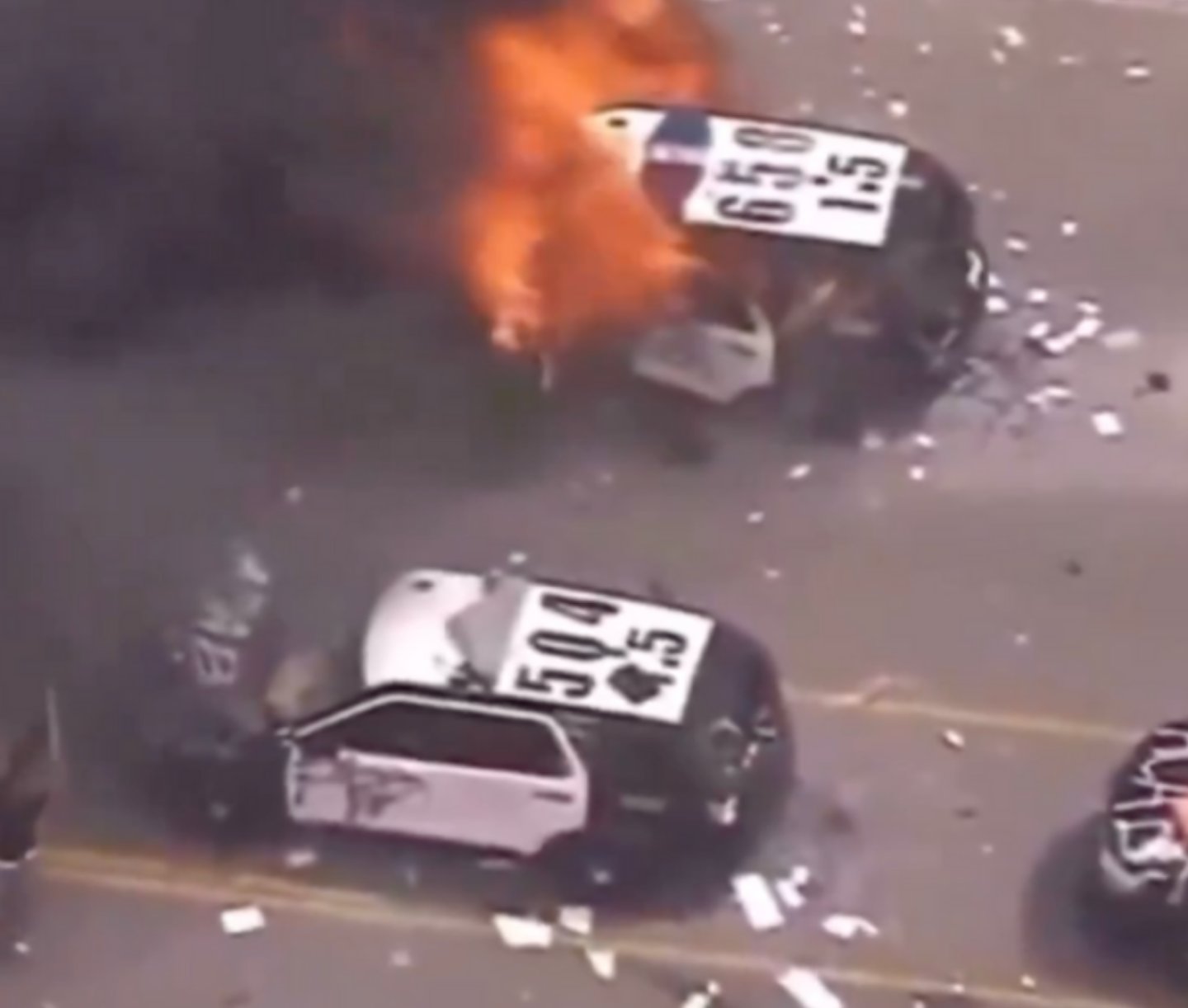31 Mayıs 2020 tarihli bir başka NBC Los Angeles haberinde, siyahi ABD vatandaşı George Floyd’un polis tarafından öldürülmesi üzerine Fairfax semtinde başlayan gösterilerin şiddetli bir biçimde yayıldığı bilgisi verilmiş. Haberin devamında paylaşılan ikinci videonun 25 ve 27. saniyeleri arasında yanan polis araçları görülüyor.